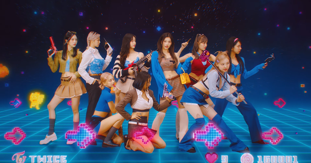 No mais recente lançamento do Twice por exemplo, o clipe da música Talk That Talk traz bem essa referência dos anos 2000. Aqui encontramos uma paleta de cores que abusa do colorido e do brilho. O clipe também faz referência a tecnologias da época, como games, celulares e câmeras. Até a própria capa do álbum é em um modelo de colagem que lembra bastante o livro “Burn Book” de Meninas Malvadas.