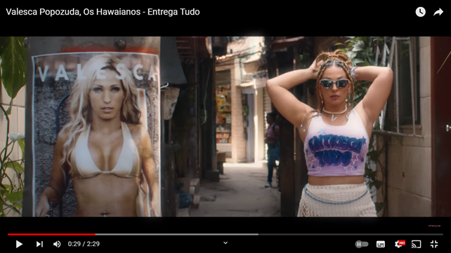 No Brasil, não é diferente. A cantora Valesca Popozuda recentemente lançou o single em parceria com Os Hawaianos, “Entrega tudo”, que resgata elementos do funk dos anos 2000. Nesse clipe, nada é à toa. As roupas usadas pela cantora, a maquiagem que abusa do brilho labial e o figurino colorido dos dançarinos, todos remetem a um Brasil de 20, 15 anos atrás.